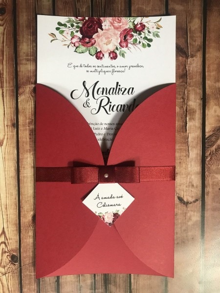 Convite Casamento Marsala no Elo7 . Compre Convite Casamento Marsala no Elo7 por R$ 2,69 com frete grátis | Encontre mais produtos de Convites de Casamento e Convites parcelando em até 12 vezes | OBS: Esse modelo necessita de consulta de estoque da fita nessa tonalidade, antes de efetuar o pedido.