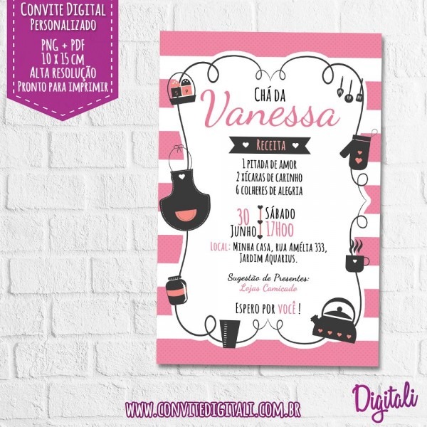 Convite Virtual Chá de Cozinha no Elo7 . Compre Convite Virtual Chá de Cozinha no Elo7 por R$ 25,00 | Encontre mais produtos de Convites de Chá de Cozinha e Convites parcelando em até 12 vezes | Convite Virtual nos formatos PNG, JPG e PDF.
