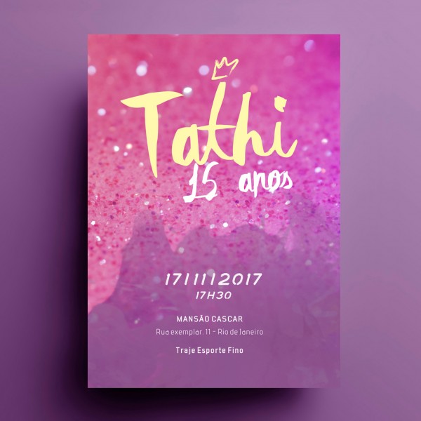Convite de 15 anos . Arte de convite de 15 anos para imprimir com lindas cores e Sparkles ao fundo. papeleletra.com.br