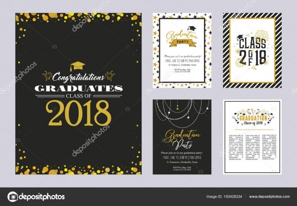 Classe de formatura de 2018 cartão de saudação e convite modelo definido. Convite para festa de vetor. Cartaz de Grad â Vetores de Stock © lipmic .