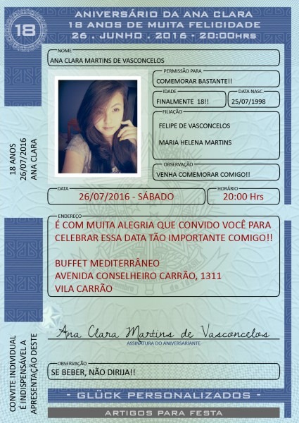 Convites Aniversário 18 Anos Habilitação Cnh Personalizado . Compre-o no Mercado Livre por R$ 18,99 - Compre em 12 parcelas. Encontre mais produtos de Brinquedos e Hobbies, Ar Livre, Malabares e Festas, Festas , Convites, Outros. produto.mercadolivre.com.br