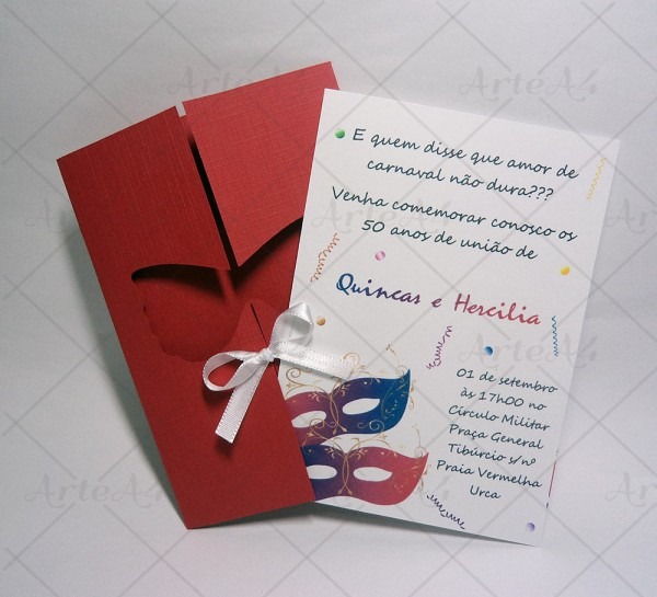 Convite Máscara. Somos uma empresa especializada em tornar o seu evento único e inesquecÃvel através de itens personalizados e exclusivamente desenvolvidos para cada cliente, levando sempre em consideração a personalidade de cada um e o tema escolhido para a festa. www.artea4.com.br