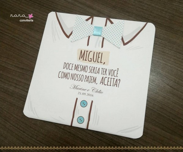 Convite Para Pajem Com Gravata Borboleta E Suspensório . Compre-o no Mercado Livre por R$ 69,90 - Compre em 12 parcelas. Encontre mais produtos de Brinquedos e Hobbies, Ar Livre, Malabares e Festas, Festas , Convites, Casamento. produto.mercadolivre.com.br