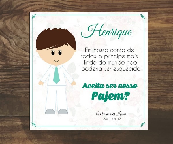 Arte digital convite Pajem no Elo7 . Compre Arte digital convite Pajem no Elo7 por R$ 12,00 | Encontre mais produtos de e Papel e Cia parcelando em até 12 vezes | Veja que coisa mais linda esse convite para os Pajens de seu casamento, eles vão se sentir super especiais.