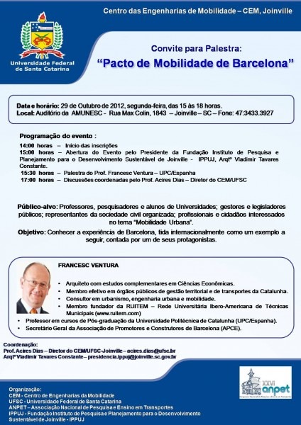Convite para Palestra:âPacto de Mobilidade de Barcelonaâ . iab-sc.org.br