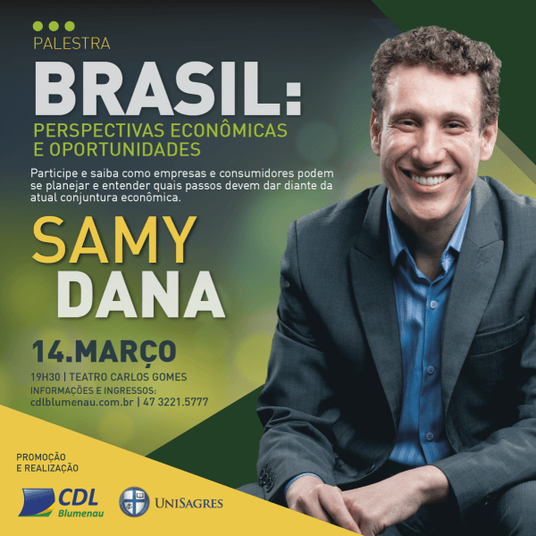 Samy Dana fará palestra em Blumenau a convite da CDL. O economista, professor e comentarista Samy Dana é o primeiro convidado a participar do Ciclo de Palestras 2018, realizado pela CDL Blumenau em parceria com a UniSagres. Será no dia 14 de março, no Teatro Carlos Gomes. Na... www.cdlblumenau.com.br