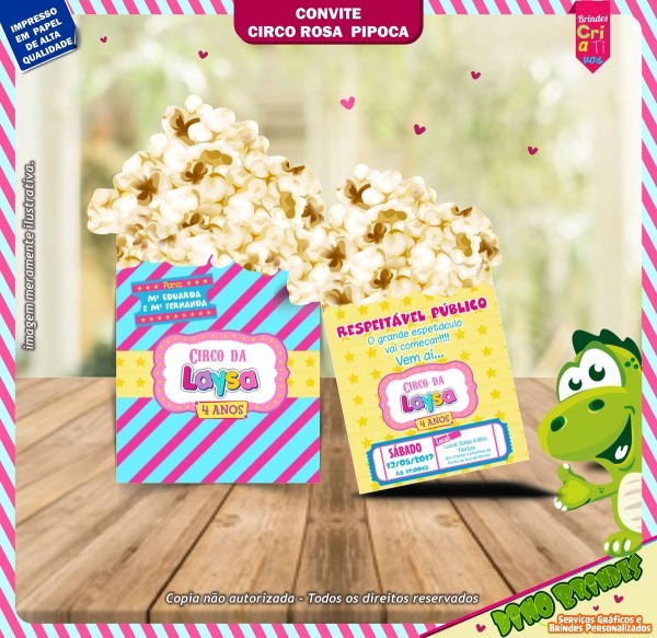 CONVITE CIRCO Rosa . Compre CONVITE CIRCO Rosa - Pipoca no Elo7 por R$ 2,60 | Encontre mais produtos de e Papel e Cia parcelando em até 12 vezes | Nós da Dino Brindes oferecemos as melhores opções em personalizados,
