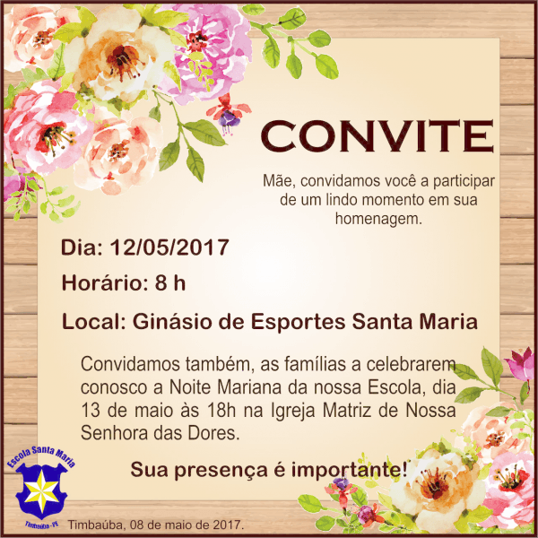 CONVITE PARA O DIA DAS MÃES . Avaré