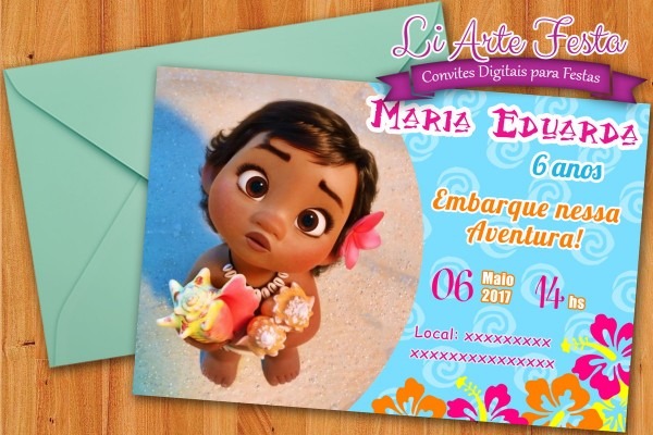 Convite Moana Baby (Arte Digital) + Lacre Envelope Grátis no Elo7 . Compre Convite Moana Baby (Arte Digital) + Lacre Envelope Grátis no Elo7 por R$ 18,00 | Encontre mais produtos de Convites de Aniversário Infantil e Aniversário e Festas parcelando em até 12 vezes | Convite Digital Moana Baby