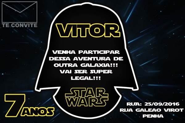 Convite Digital Star Wars . Compre-o no Mercado Livre por R$ 9,99 - Compre em 12x. Encontre mais produtos de Brinquedos e Hobbies, Ar Livre, Malabares e Festas, Festas , Convites. produto.mercadolivre.com.br