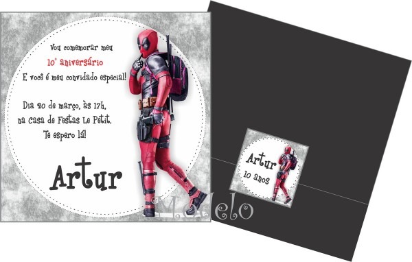Convite Deadpool no Elo7 . Compre Convite Deadpool no Elo7 por R$ 3,39 | Encontre mais produtos de Convites de Festa Infantil e Convites parcelando em até 12 vezes | Convite impresso a laser em papel couché brilho 250g.