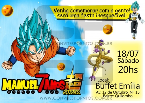 CONVITE DE ANIVERSÃRIO DRAGON BALL SUPER . www.convitesprontos.com.br