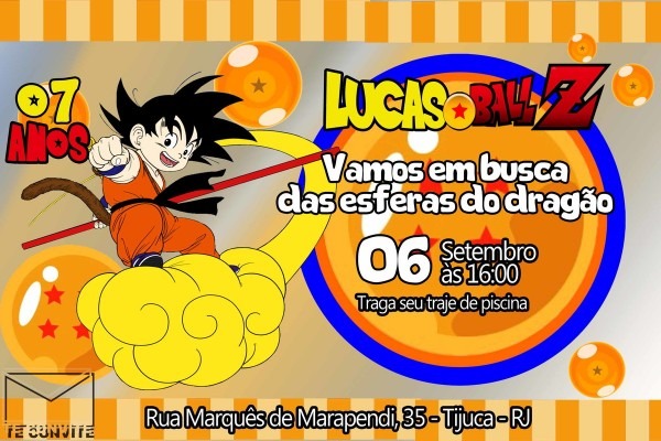 Convite De Aniversário Digital Tema Dragon Ball . Compre-o no Mercado Livre por R$ 16,00 - Compre em 12x. Encontre mais produtos de Brinquedos e Hobbies, Ar Livre, Malabares e Festas, Festas , Convites, Aniversário Infantil. produto.mercadolivre.com.br