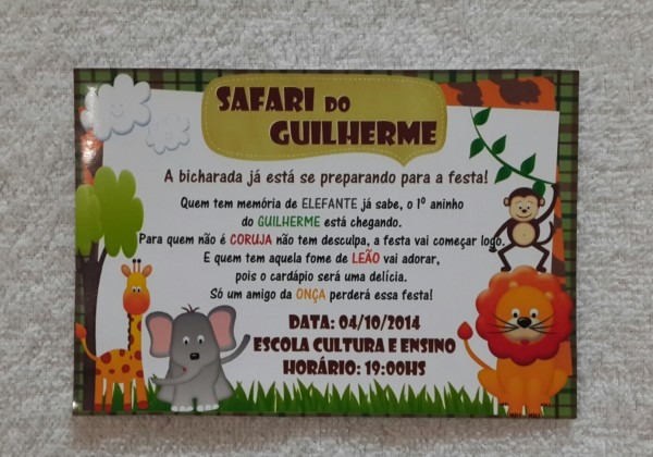 50 Convites Safari Personalizados (modelo 02) 10x15cm . Compre-o no Mercado Livre por R$ 25,00 - Compre em 12x. Encontre mais produtos de Brinquedos e Hobbies, Ar Livre, Malabares e Festas, Festas , Convites, Aniversário Infantil. produto.mercadolivre.com.br