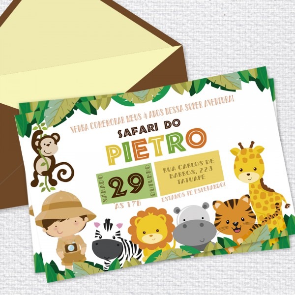 Convite Safari . Compre-o no Mercado Livre por R$ 15,00 - Compre em 12x. Encontre mais produtos de Brinquedos e Hobbies, Ar Livre, Malabares e Festas, Festas , Convites, Aniversário Infantil. produto.mercadolivre.com.br
