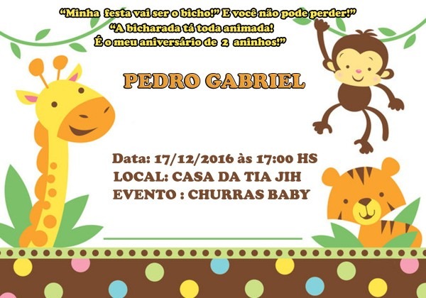 Convite Safari Arte Digital Personalizado Whatsapp . Compre-o no Mercado Livre por R$ 20,00 - Compre em 12x. Encontre mais produtos de Brinquedos e Hobbies, Ar Livre, Malabares e Festas, Festas , Convites, Aniversário Infantil. produto.mercadolivre.com.br