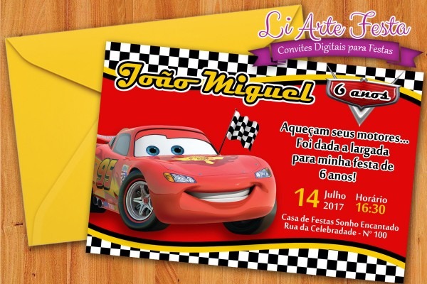Convite Carros Disney Arte Digital Para Whatsapp . Compre-o no Mercado Livre por R$ 15,00 - Compre em 12 parcelas. Encontre mais produtos de Brinquedos e Hobbies, Ar Livre, Malabares e Festas, Festas , Convites, Aniversário Infantil. produto.mercadolivre.com.br