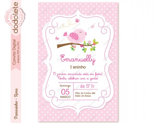 Convite Digital Passarinho . Compre Convite Digital Passarinho - Rosa no Elo7 por R$ 35,00 | Encontre mais produtos de Convites de Aniversário e Convites parcelando em até 12 vezes | Lindo Convite Digital