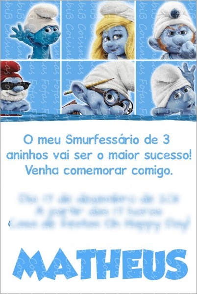 Cantinho da Camila: Convite dos Smurfs. meucantinhocamila.blogspot.com