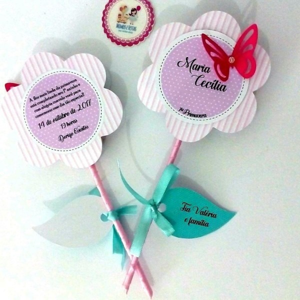 Convite flor pirulito no Elo7 . Compre Convite flor pirulito no Elo7 por R$ 8,90 | Encontre mais produtos de Convites de Aniversário Infantil e Aniversário e Festas parcelando em até 12 vezes | Convite em formato de flor, tema jardim.