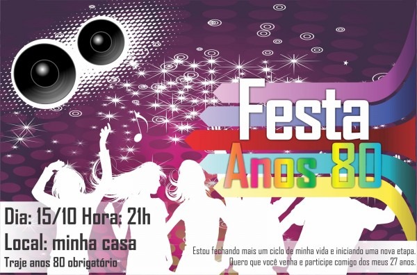 Portfólio LetÃcia Martinez: Convite festa anos 80 (particular). martinezleticia.blogspot.com