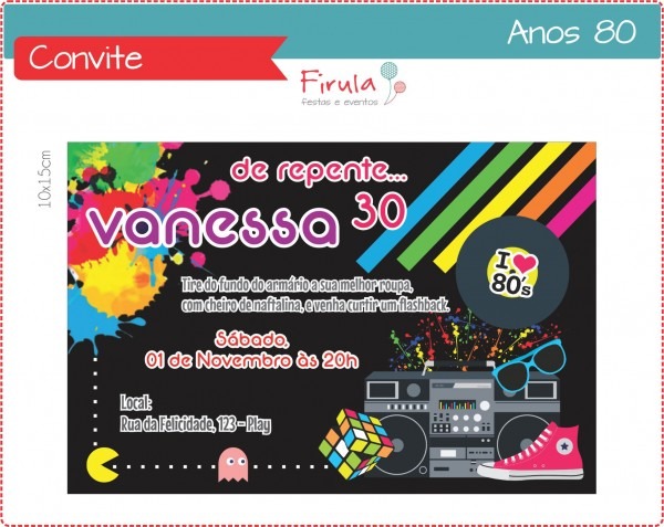 Convite Digital Anos 80 no Elo7 . Compre Convite Digital Anos 80 no Elo7 por R$ 30,00 | Encontre mais produtos de Convites de Aniversário Infantil e Aniversário e Festas parcelando em até 12 vezes | Convite digital personalizado, tamanho 10x15cm ou 9x13cm.