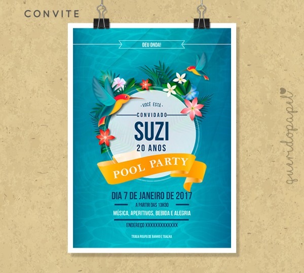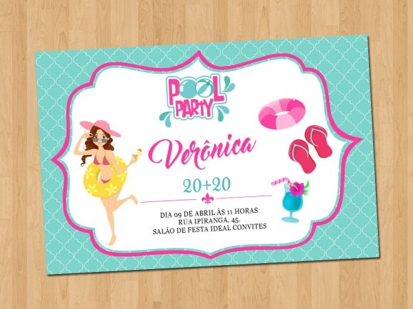 Convite . Compre Convite - Aniversário Pool Party no Elo7 por R$ 1,65 | Encontre mais produtos de Convites de Aniversário e Convites parcelando em até 12 vezes | Convite - Aniversário Pool Party