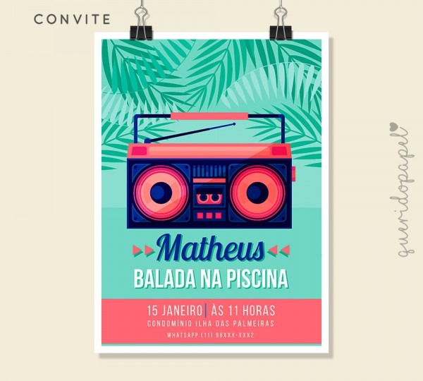 Convite Pool Party Verão . Compre Convite Pool Party Verão | Digital no Elo7 por R$ 27,80 | Encontre mais produtos de Convites de Aniversário e Convites parcelando em até 12 vezes | A Querido Papel trabalha exclusivamente com envio de artes digitais, por isso, compre apenas uma vez e imprima quantas vezes quiser!..., 861B46 www.elo7.com.br