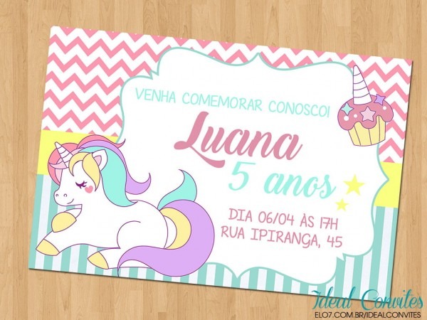 Convite Unicórnio no Elo7 . Compre Convite Unicórnio no Elo7 por R$ 3,18 | Encontre mais produtos de Convites de Festa Infantil e Convites parcelando em até 12 vezes | Convite impresso a laser em papel couché brilho 250g.