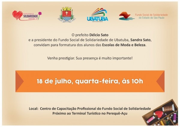 Prefeitura e Fundo Social convidam para formatura de alunas das Escolas de Moda e Beleza . www.ubatuba.sp.gov.br