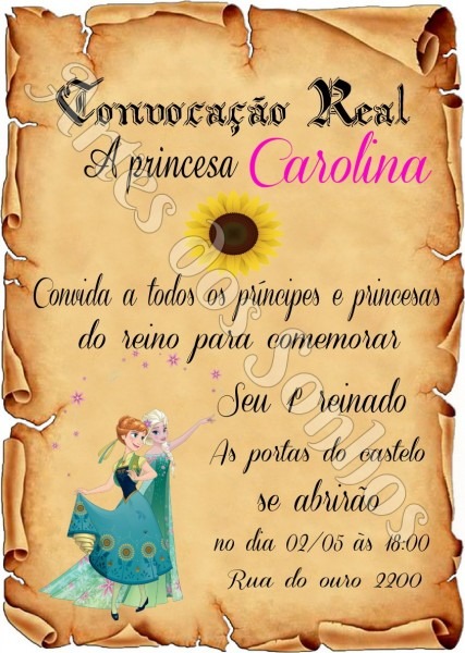 Convite Pergaminho frozen fever no Elo7 . Compre Convite Pergaminho frozen fever no Elo7 por R$ 1,20 | Encontre mais produtos de Convites de Aniversário e Convites parcelando em até 12 vezes | CONVITES TAMANHO: 10X14 CM