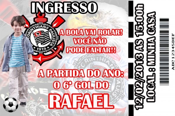 48 Convites Ingresso Corinthians . Compre-o no Mercado Livre por R$ 48,00 - Compre em 12x. Encontre mais produtos de Brinquedos e Hobbies, Ar Livre, Malabares e Festas, Festas , Convites, Aniversário Infantil. produto.mercadolivre.com.br