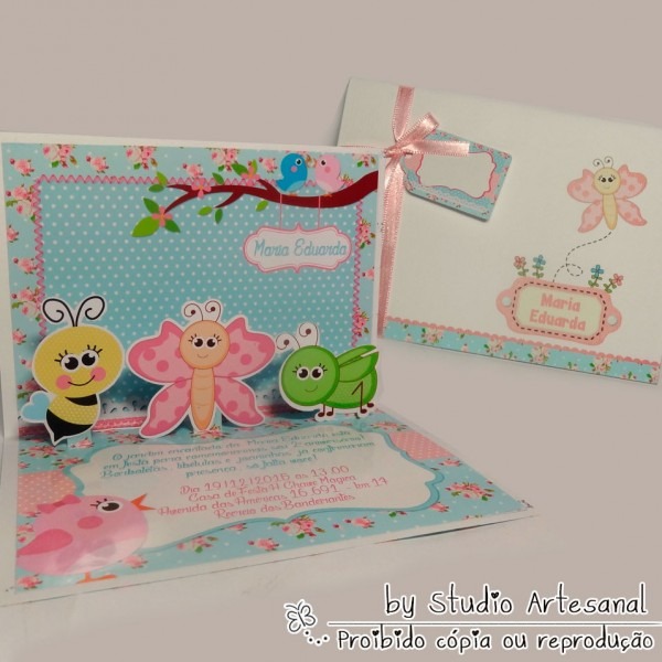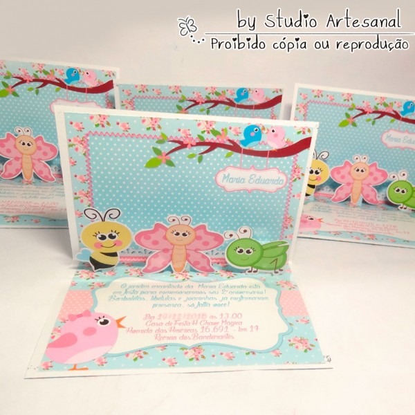 Convite Pop Up . Compre Convite Pop Up - Jardim Encantado no Elo7 por R$ 6,49 | Encontre mais produtos de Convites de Aniversário Infantil e Aniversário e Festas parcelando em até 12 vezes | Ao abrir o convite os personagens ficam de pé à frente do convite.