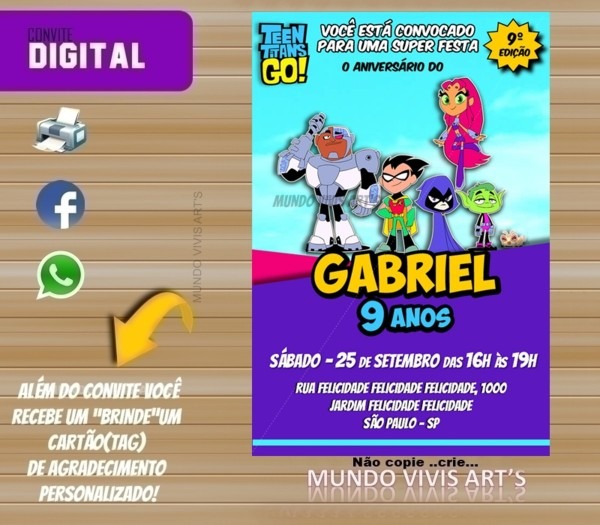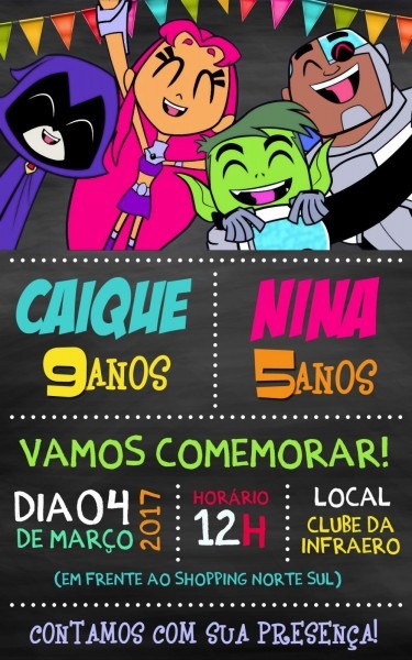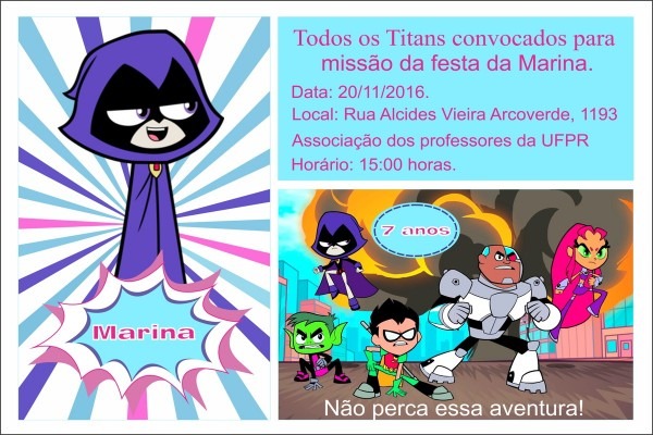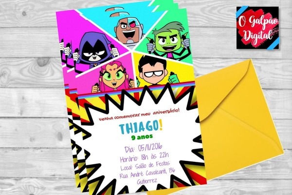 Convite Digital Jovens Titans . Compre-o no Mercado Livre por R$ 24,90 - Compre em 12x. Encontre mais produtos de Brinquedos e Hobbies, Ar Livre, Malabares e Festas, Festas , Convites. produto.mercadolivre.com.br