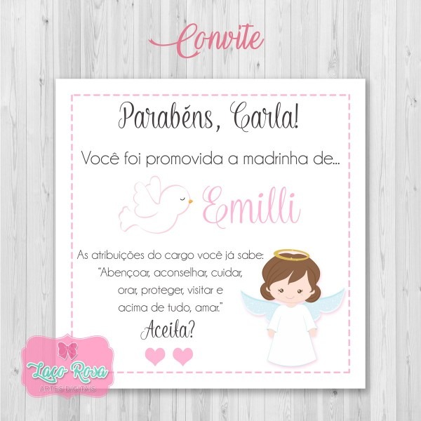 Convite digital Madrinha Batizado no Elo7 . Compre Convite digital Madrinha Batizado no Elo7 por R$ 22,00 | Encontre mais produtos de Convites de Batizado e Convites parcelando em até 12 vezes | Convite Madrinha Batizado personalizado - arte digital