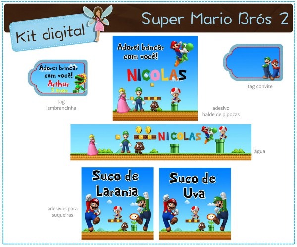 . Kit digital para impressão Super Mario Bros www.montandominhafesta.com.br