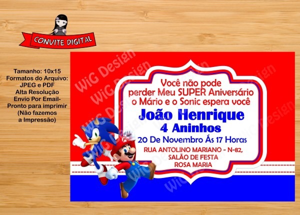 Convite Digital Mario e Sonic no Elo7 . Compre Convite Digital Mario e Sonic no Elo7 por R$ 20,00 | Encontre mais produtos de Convites de Aniversário e Convites parcelando em até 12 vezes | Convite Digital para enviar via Facebook, Whatsapp ou e-mail.