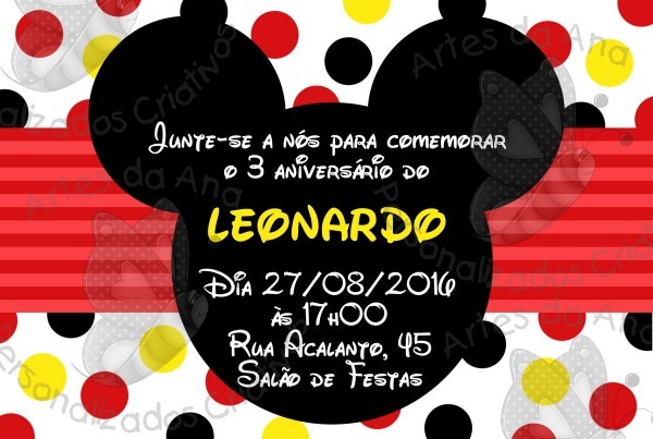 Convite Mickey no Elo7 . Compre Convite Mickey no Elo7 por R$ 2,30 | Encontre mais produtos de Convites de Aniversário Infantil e Aniversário e Festas parcelando em até 12 vezes | Convite impresso em papel fotográfico.