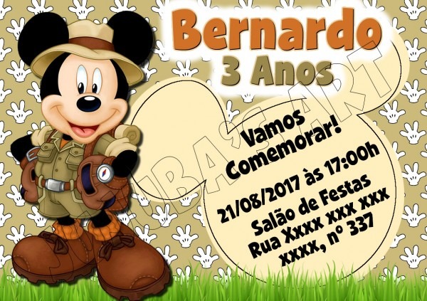 Convite Mickey safari . Contato: Email : carolborja2@gmail.com Whatsapp: 31993501425 Facebook : @cahborjaretrospectivas www.youtube.com