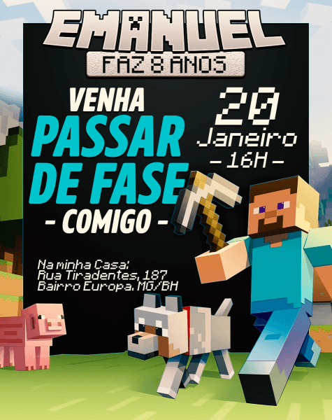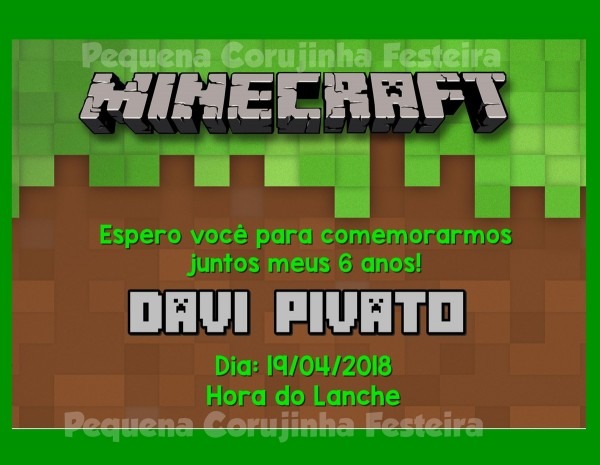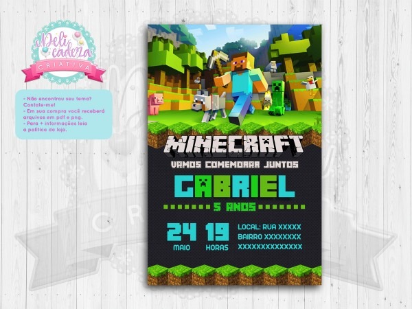 Convite Digital . Compre Convite Digital - Minecraft no Elo7 por R$ 20,00 | Encontre mais produtos de Convites de Aniversário e Convites parcelando em até 12 vezes | ************************************
