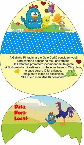 Convite Personalizado Em Formato De Ovo Galinha Pintadinha . Compre-o no Mercado Livre por R$ 25,00 - Compre em 12 parcelas. Encontre mais produtos de Brinquedos e Hobbies, Ar Livre, Malabares e Festas, Festas , Convites, Outros. produto.mercadolivre.com.br