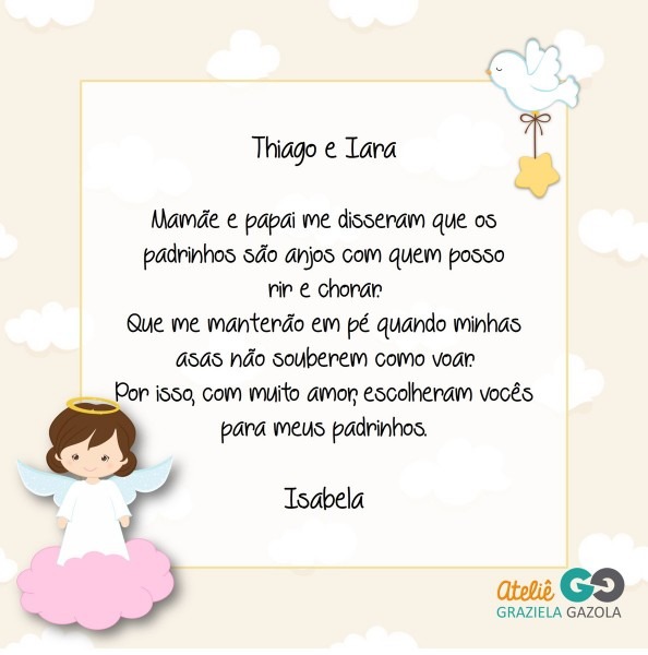 Arte Digital . Compre Arte Digital - Convite Batizado padrinhos de CONSAGRAÃÃO no Elo7 por R$ 9,90 | Encontre mais produtos de Kit Festa Infantil e Aniversário e Festas parcelando em até 12 vezes | TEMA: Batizado/Anjo, é ideal para chá de bebê, chá de fraldas, maternidade e aniversário.