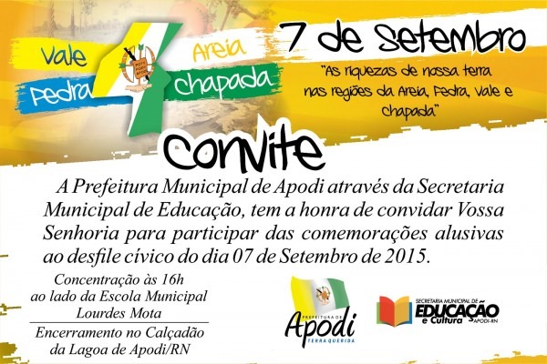 SEMEC APODI RN: Convite desfile cÃvico de 07 de setembro em Apodi. educacaoapodi.blogspot.com