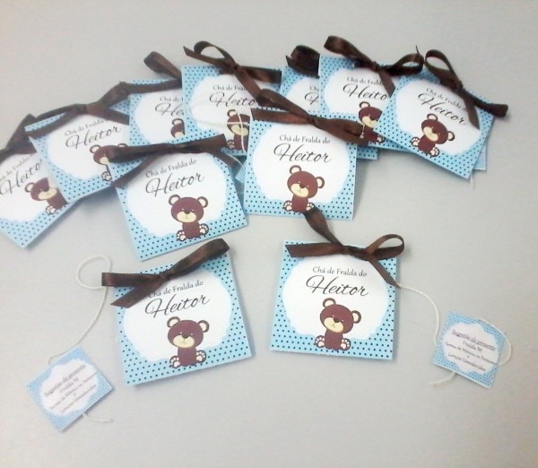 Convite Saquinho de Chá Urso Azul e Marrom . www.ecaixadeideias.com.br