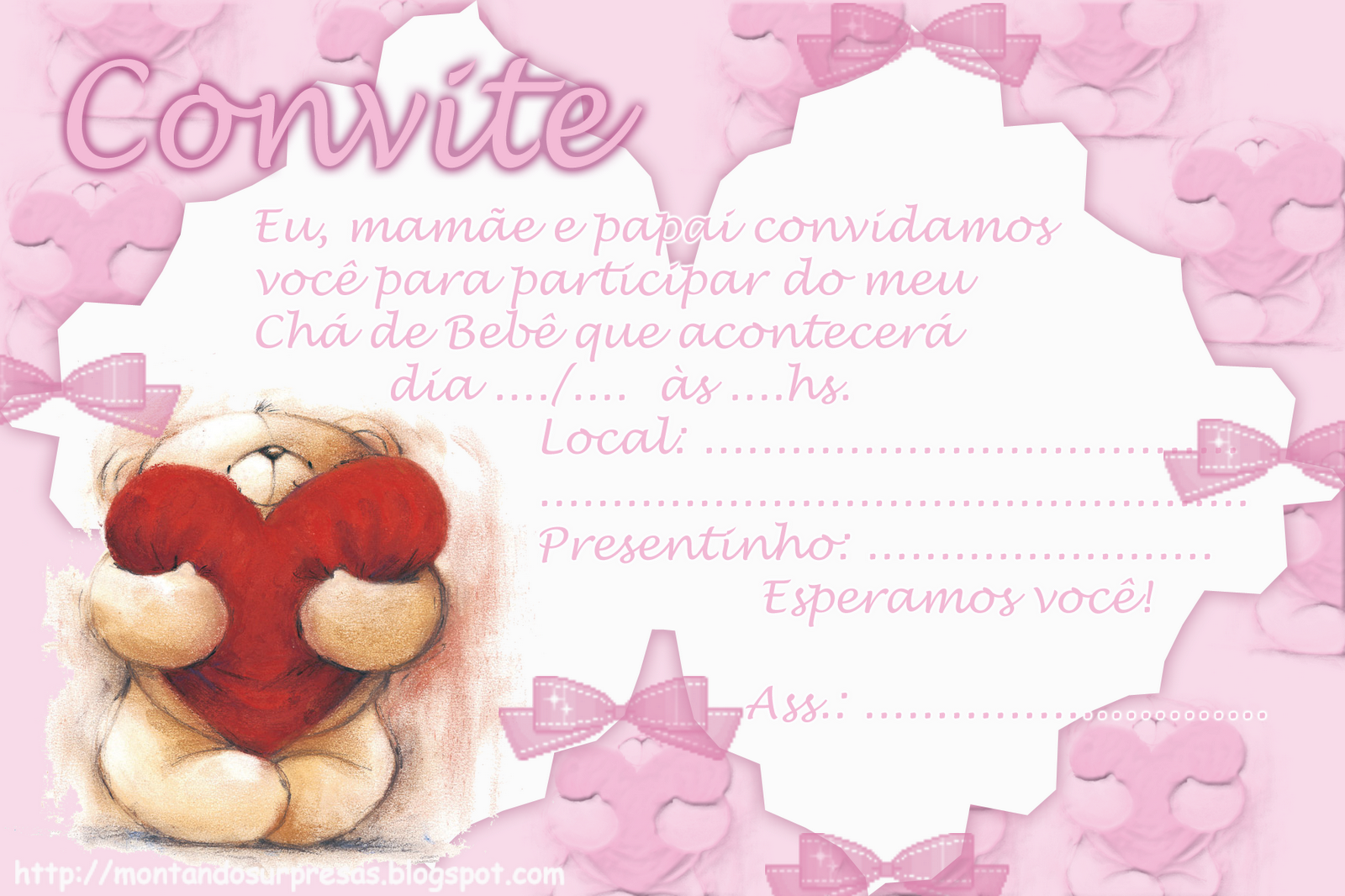 Convite para cha de bebe de menina