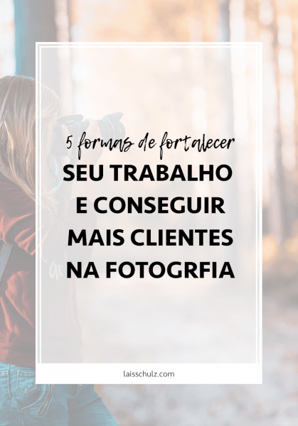5 formas de conseguir mais clientes como fotógrafo. Não vou mentir, ser fotógrafo não é fácil, mas também não é impossÃvel. Além das dificuldades da profissão em si, ainda há todo o trabalho de se promover e conseguir trabalhos suficientes para viver â e pagar os boletos. Portanto, é importante, acima de tudo, estabelecer uma estratégia para fortalecer seu trabalho. www.laisschulz.com