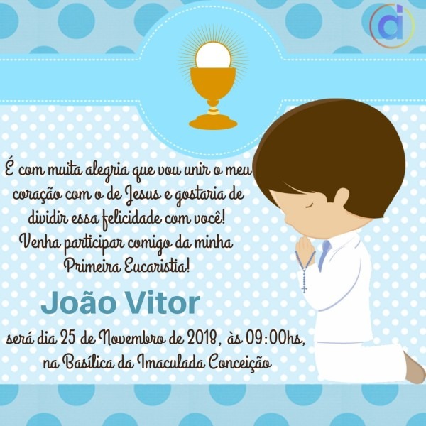 Lindo convite digital no tema de 1ª Eucaristia para você mesmo imprimir ou enviar pelas redes sociais..., DAB1DB www.elo7.com.br