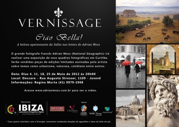 Convite para exposição do renomado fotógrafo Adrian Moss . O grande fotógrafo francês Adrian Moss (National Geographic) irá realizar uma exposição de seus quadros fotográficos em Curitiba. Serão vendidas peças... www.pontodeapoio.org.br