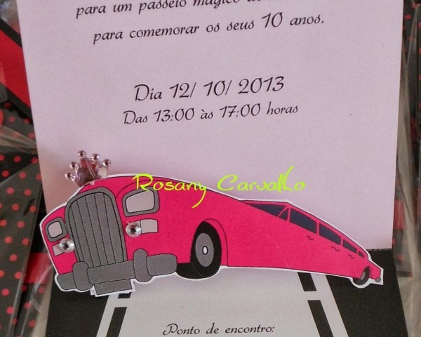 Ry Scrap Arts convites: Convite Limousine 3D com estampa poá pink. ryscrapartsconvites.blogspot.com