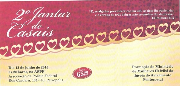 Convite March 31, 2019March 31, 2019 by MarisolConvite para jantar de casais Especial Dia dos Namorados: Como presentear sua amada. www.dicasdacarol.com.brM.I.Estoraque عÙ٠تÙÙØªØ±: "Shalom Casais, nosso jantar romântico está chegando, não perca dia 24 de Junho . twitter.comMinistério de Mulheres Hefzibá: CONVITE. mulhereshefziba.blogspot.com Related posts:Convite carrossel encantado para imprimirTextos para convites de debutantesConvite aniversario emojiPost navigationConvite tema musicaComo fazer convite cataventoLeave a Reply Cancel replyYour email address will not be published. Required fields are marked *Comment *Name * Email * Website Save my name, email, and website in this browser for the next time I comment. Δ